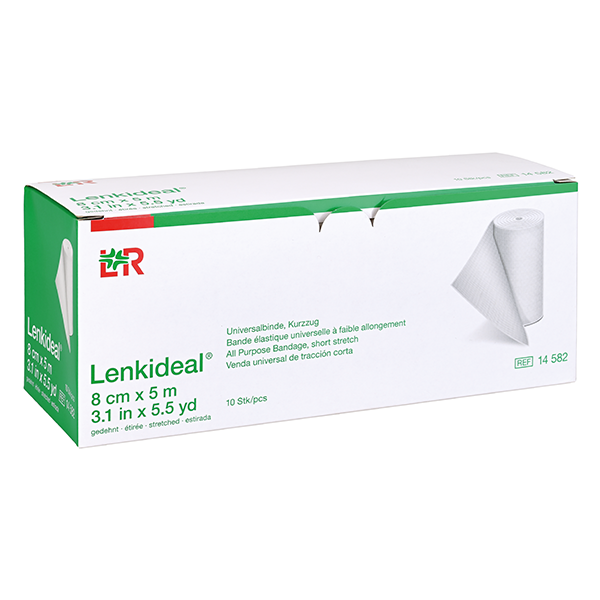 Die Idealbinde Lenkideal® eignet sich bestens zur komprimierenden Fixierung von Wundauflagen, zur Kompression der Extremitäten in der Phlebologie oder zum Stützen und Entlasten bei Distorsionen. Sie wird aber auch zur Behandlung von Sehnenscheidenentzündungen.