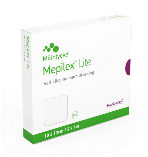 Der Mölnlycke Schaumverband Mepilex® Lite ist ein weicher, anpassungsfähiger Schaumverband, der mit Safetac Schmerzen beim Verbandwechsel minimiert.