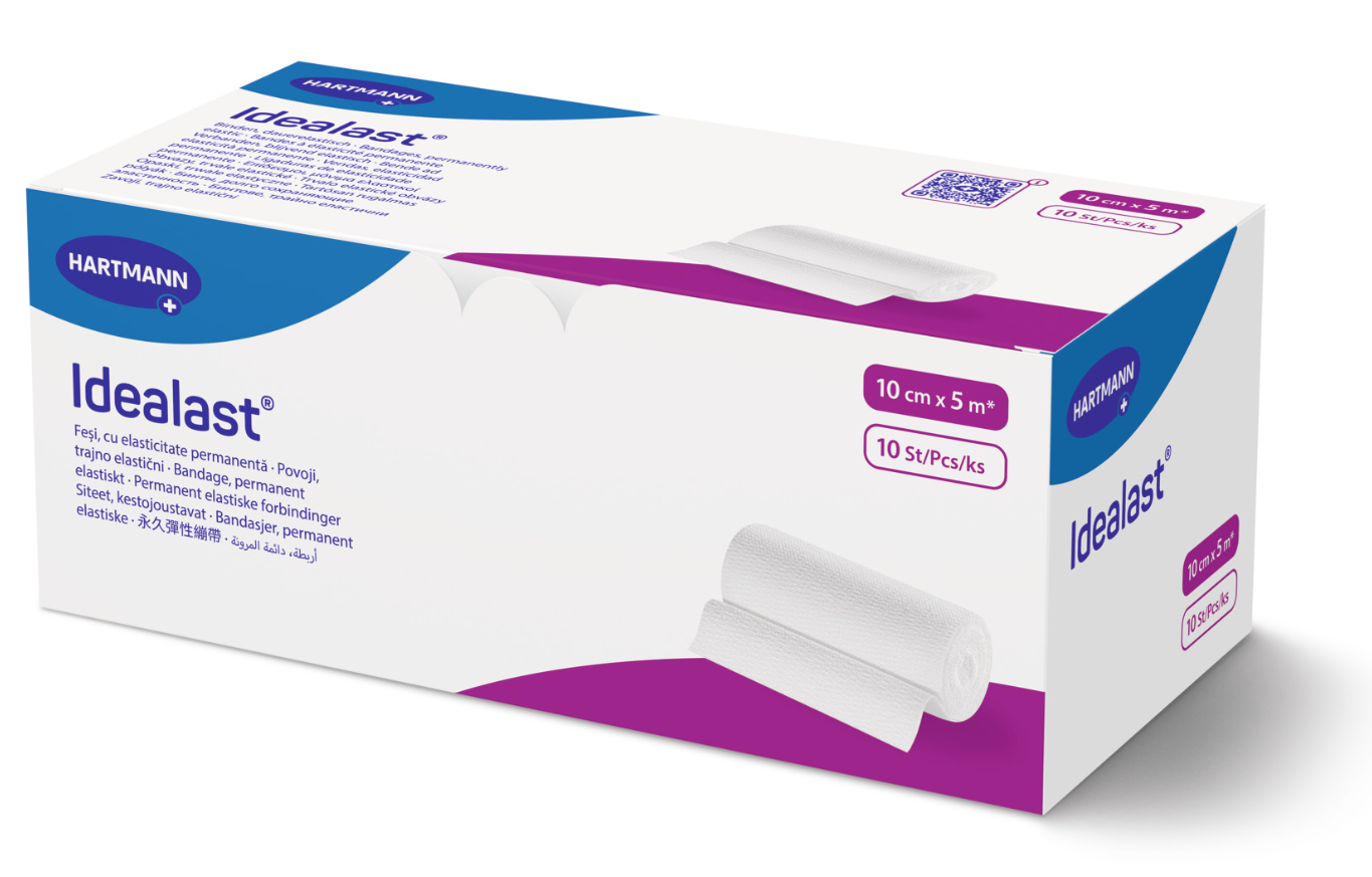Die Idealast® Universalbinde von Hartmann ist eine Kurzzugbinde mit einer Dehnbarkeit von ca. 85%. Dank ihre besonderen Zusammensetzung von 64% Baumwolle, 34% Polyamid und 2% Elasthan wird ein Ausleiern der Binde beim Tragen verhindert. Mit einem hohen Arbeitsdruck und einem niedrigen Ruhedruck kann die Idealbinde auch in Ruhelage getragen werden. Mit der Idealast® können mittelkräftige Stütz- und Entlastungsverbände angelegt werden. Daher ist die Universalbinde bestens für die Bereiche Sport oder die komprimierende Wundversorgung oder zum Anlegen von Schienen geeignet. Aber auch in der Prophylaxe ist die Binde sehr gut einsetzbar. Die Binde ist bei 60°C waschbar und bei Dampf A 134°C sterilisierbar.