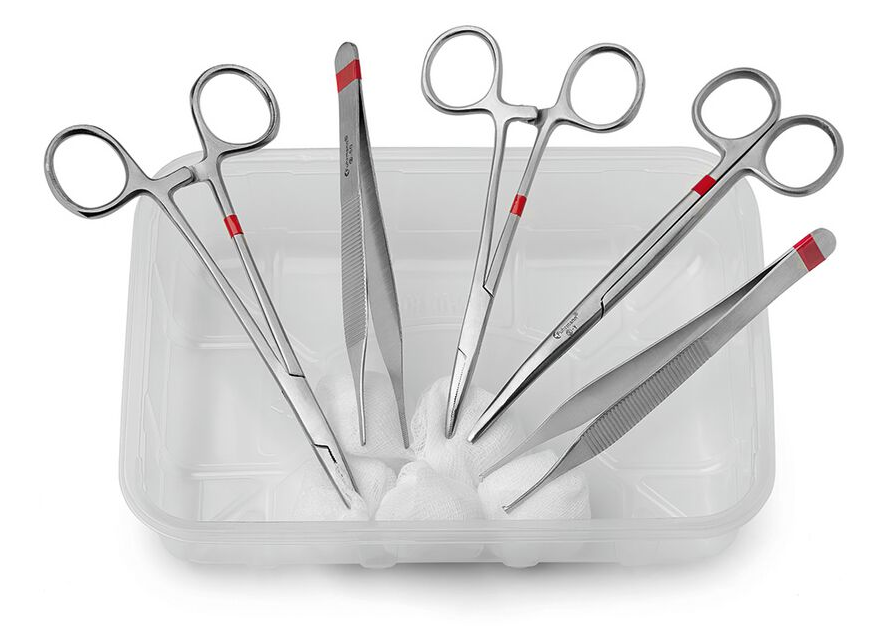 Das Basis-Set fein von Fuhrmann kann im Bereich der hygienischen Wundversorgung sowei bei chirurgischen Eingriffen eingesetzt werden. Dank Einmal-Instrumenten entfällt eine aufwendige Aufbereitung nach Gebrauch.