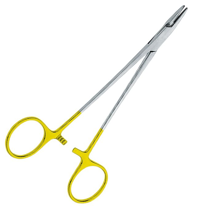 Der Nadelhalter besteht aus einem rostfreien Edelstahl, ist leicht zu reinigen und zu desinfizieren und so für die Sterilisation vorzubereiten. Besonders in der Mikrochirurgie findet der Nadelhalter für den Verschluss von feinsten Operationswunden seinen Einsatz. Der sichere Brillengriff und die Arretierung des Nadelhalters garantieren ein sicheres Halten selbst mit Handschuhen und unter nassen Bedingungen.
