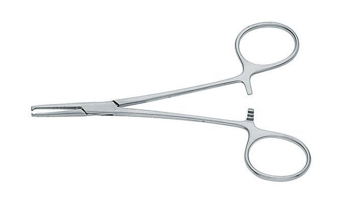 Die Zepf Arterienklemmen nach Halsted-Mosquito gibt es in vier Ausführungen: gebogen oder gerade und jeweils mit, oder ohne Zähne. In 12,5 cm Länge.
