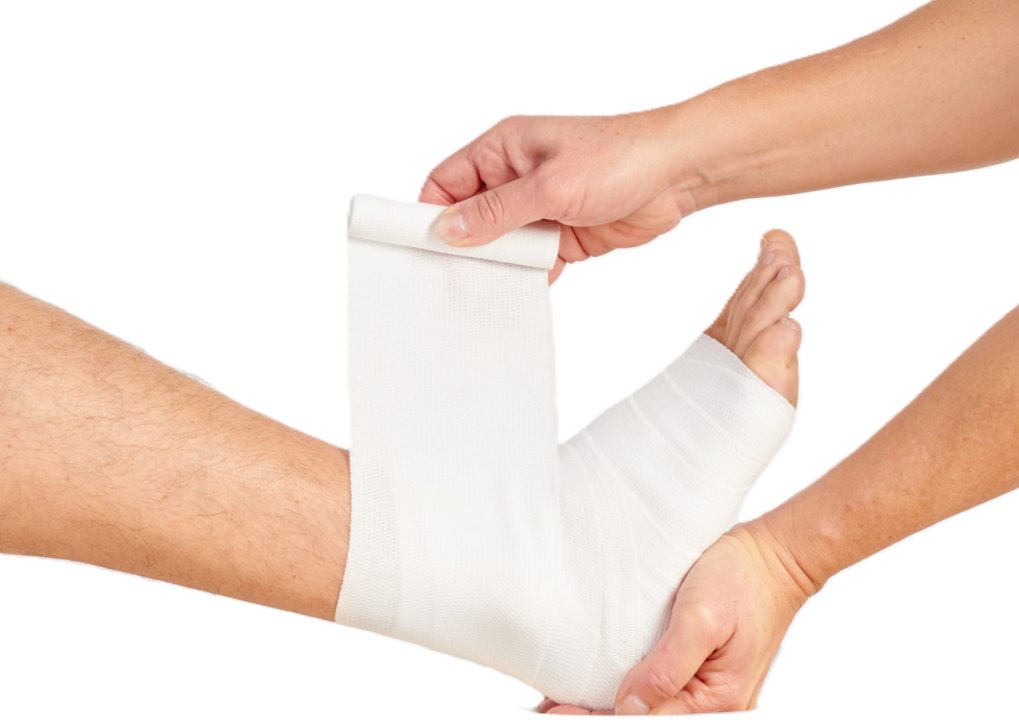 - Stütz- und Entlastungsverbände bei Erstversorgung sowie komprimierende Wundverbände